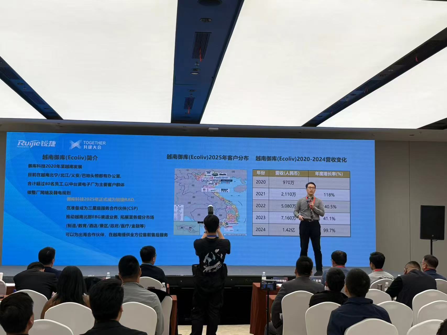智聯雲網子(zǐ)公司越南(nán)禦庫成為(wèi)越南(nán)銳捷行(xíng)業(yè)總代,越南(nán)禦庫總經理(lǐ)陳昱夫出席出席銳捷全球峰會(huì),₩并發表越南(nán)市(shì)場(chǎng)報(bào)告